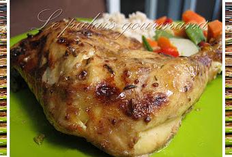 Tout simplement excellent, le poulet fond dans la bouche et est bien juteux...par contre j'aurais préféré que ça goûte plus la moutarde de dijon. Je me suis inspiré de la recette sur le site de, Métro. Le truc pour qu'il soit bien juteux est de le couvrir de papier d'aluminium à la fin de cuisson et le laisser reposer dans le four éteint une vingtaine de minutes si vous avez le temps, sinon 10 minutes.6 cuisses de poulet, peau enlevées
