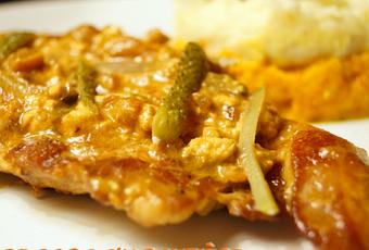 Un plat de tous les jours, économique et qui pourra, sans honte, se présenter à vos invités joliment nappé d’une sauce composée d’oignons ciselés, de vin blanc, de fond de veau lié et de cornichons.