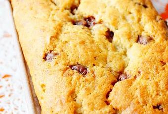 Réduire le chocolat en gros morceaux et en copeaux ( j'ai utilisé des pépites de chocolat que j'ai ajouté directement à la pâte ). Ajouter à la pâte.