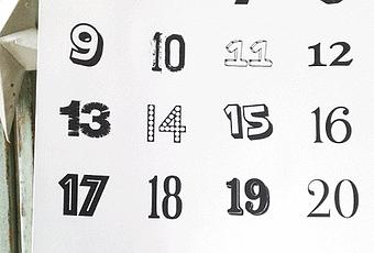 3_ imprimez la grille de numéro "spécial Avent" que je vous ai concoctée (télécharger la grille) avec pleins de typo différentes. Découpez-les comme ça vous chante et collez-les sur vos pochettes (Vous pouvez même imprimer directement sur une page de papier autocollant).