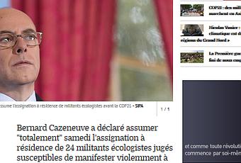 Justifier notamment l’assignation à résidence de 24 militants écologistes, en les mettant au même niveau que les terroristes de Daesh, fallait oser. Cazeneuve vient de le faire, sans honte aucune  :