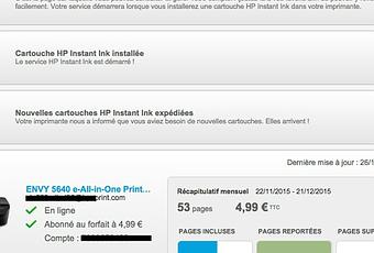 Nous imprimons beaucoup puisque j'ai changé mon forfait de 100 pages à un forfait de 300 pages au mois de septembre, pour le repasser à 100 pages. Tout ça en 1 clic.