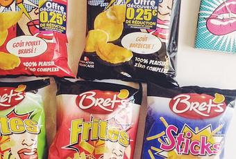 Bret’s, la marque de chips « Made in France », vient de lancer (il y a quelques mois) une nouvelle gamme de snacks apéritifs au packaging Pop très coloré déclinés en 3 références : des chips (goût barbecue, emmental ou poulet braisé), des frites (goût salé, crème oignon ou poulet braisé) et des sticks (goût salé).