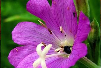 L' Épilobe hirsute (Epilobium hirsutum) est plante pubescente, dressée, à tige stolonifère, feuilles oblongues opposées, sessiles, dentées, partiellement embrassantes, inflorescence en grappe feuillée, grandes fleurs rouge pourpre à pétales égaux bilobés, stigmates en croix.