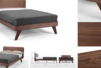 Une structure avec des piétements haut en Hêtre combinée à une couette aux courbes moelleuses façon capiton. Un mélange de formes sobres pour les montants assemblés à la grande légende du matelassage revisitée.