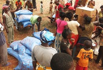 En trois jours, du 26 au 28 novembre derniers, la Croix-Rouge Centrafricaine et le CICR ont distribué de l'assistance alimentaire à plus de 11000 personnes dans les 3ème et 5ème arrondissements de Bangui ainsi que dans la commune limitrophe de Bimbo.