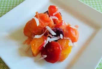 Pendant ce temps-là, j'ai épluché mes betteraves et je les ai coupées en rondelles d'1 cm... pour des raisons esthétiques mais aussi parce qu'elles mettent plus de temps à cuire.