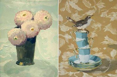 Des natures mortes romantiques et rayonnantes peintes avec une douce détermination par Susan Homer et dont les seules passagers de ce voyage sont de joyeux pinsons. Avec ses décors riches, inspirés des tapisseries 18ème ou Chinoise, Susan Homer cultive un esprit contemporain emprunté au passé.