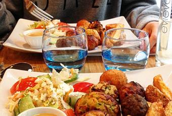 On aime bien quand une nouvelle adresse ouvre dans le quartier. Surtout quand il ne s’agit pas d’un restaurant italien supplémentaire… Evi Evane Mézès, on a eu un peu de mal à le retenir, est un restaurant grec créé par deux soeurs. L’une s’active aux fourneaux, Dina, tandis que la seconde nous expliquer la carte, Maria. Il s’agit de leur seconde adresse germanopratine.