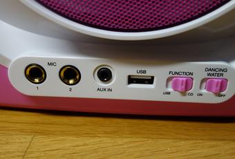 Elle possède 2 entrées microphones et 2 micro sont installés sur l’arrière. Notre fille peut donc inviter une de ses copines et chanter ensemble sur leurs tubes favoris et les enregistrer. C’est vraiment rare d’avoir 2 micros fournis avec ce type de chaine (pour enfant).