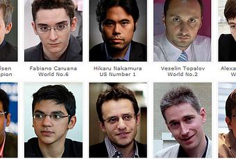 Les 10 super grands-maîtres d'échecs engagés au London Chess Classic, la 3ème et ultime étape du Grand Chess Tour 2015 après le Norway Chess et la Sinquefield Cup.