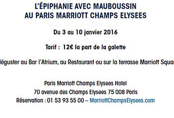 Tous les jours à partir de 12h, les clients de l'hôtel auront le choix entre trois ambiances conviviales pour déguster les trois galettes des rois : la terrasse Marriott Square pour être au coeur de l'effervescence des Champs Elysées et profiter des illuminations de l'avenue, le Bar L'Atrium pour s'installer près du sapin de Noël sous le magnifique dôme ou au restaurant de l'hôtel dans une ambiance plus intimiste.