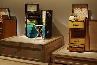 Wardrobe, cabine, plate, lit, secrétaire, idéale, auto, aéro... des termes mystérieux qui qualifient autant d'inventions imaginées dès 1854 par Louis Vuitton et ses descendants. À chaque modèle son utilisation précise et ses dimensions spéciales, adroitement conçues pour s'adapter à des cas uniques. Espaces restreints, besoin de légèreté, volumes spécifiques, vêtements à stocker pliés ou suspendus : chaque malle est une véritable définition du savoir- faire Louis Vuitton, qui augmente ainsi, à chaque création, un lexique propre à la Maison. au fil des inventions, viennent s'ajouter d'autres innovations judicieuses, de la serrure à gorges à la Vuittonite ou la toile Monogram, toujours dans cette volonté absolue d'allier l'esthétique au pratique. Présentées dans une même pièce, ces malles classiques prouvent l'intemporalité parfaite d'une vision en avance sur son temps. Les étapes d'un vocabulaire qui continue de se développer aujourd'hui.