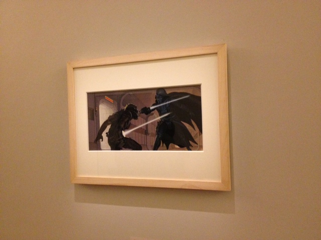 salles on retrouve le masque du célèbre méchant de la Saga et des tableaux le représentant.