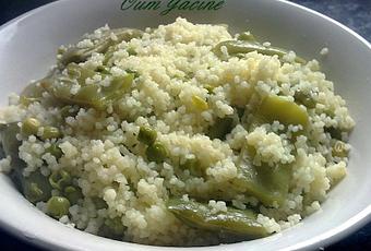 Une variante parmis tant d'autre, on y met des fèves, des petits pois,des carrotes,de l'huile d'olive et tout ce qu'on peut trouver comme légume vert. Le choix des légumes donne au couscous une saveur particulière inégale .
