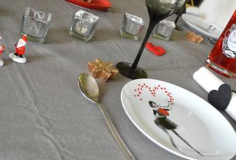 Et j'ai craqué cette année sur cette belle nappe Cervin grise avec ses coeurs rouges brodés qui s'associe parfaitement avec les assiettes Amour de la chaise longue...