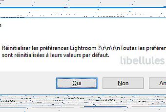 Si Lightroom ne fonctionne plus correctement, vous pouvez dans un premier temps, réinitialiser les préférences. Elles seront réinitialisées à leurs valeurs par défaut. Pour cela, redémarrez Lightroom tout en pressant les touches Shift (majuscule) + Alt. Dans la boîte de dialogue qui s'ouvre, cliquez sur Oui.