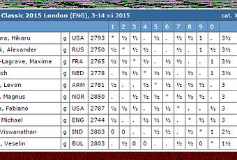 Le 7e London Chess Classic, un tournoi majeur en Angleterre, se déroule au Kensington Olympia de vendredi 4 décembre au samedi 13 décembre 2015. L'événement majeur est bien sur, ce tournoi de super GMI, le plus fort de l'Histoire organisé sur les terres de sa Majesté la Reine Elisabeth II. Ce tournoi d'échecs se dispute en 9 rondes avec 10 joueurs. La cadence des parties est de 2 heures pour 40 coups, suivi pour le reste de la partie d'une heure avec un incrément de 30 secondes par coups à partir du 41ème. Le total des prix se monte à 300.000 $, avec pour le vainqueur la coquette somme de 75.000 $.