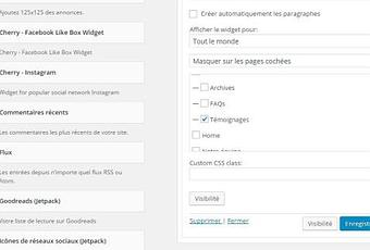 Les widgets permettent d'insérer très rapidement un même bloc (recherche, derniers commentaires) dans certains emplacements définis du thème comme une colonne à droite, ou encore dans le footer.
