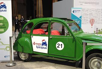 Pas mal de nouveautés exposées au Grand Palais cette semaine dans le cadre de la COP21. 4 roues sous un parapluie présentait la première 2CV électrique.