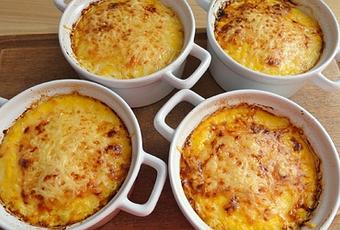 Verser cette préparation dans 4 mini-cocottes, parsemer du reste de râpé et faire cuire dans un four préchauffé à 210°C pendant environ 35 mn.