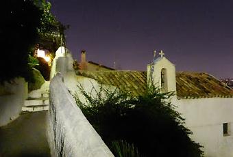 On sort du quartier, on contourne la colline de l'Acropole et on suit les gens qui se dirigent en file indienne vers le sommet d'un promontoire. Poussés par la curiosité, nos pas glissent sur les pierres lissent. C'est à nos risques et périls que nous parvenons à rejoindre le groupe dans le noir. Les gens se prennent en photo avec les néons de la métropole en arrière plan. Les amoureux s'embrassent devant la pleine lune, sous le regard attendri du monument qui en a pourtant vu bien d'autres. L'air frais commence à nous chatouiller dans le cou. Nous redescendons, tout auréolés du sortilège des lumières d'Athènes.