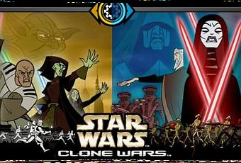 Star Wars : Clone Wars est né de la volonté de faire un lien entre L'Attaque des Clones et La Revanche des Sith. L'histoire raconte la Guerre des Clones, ainsi que l'évolution d'Anakin Skywalker de padawan à chevalier Jedi. Elle nous introduit au Général Grievous, ennemi principal de La Revanche des Sith. À l'origine c'était une série de trois saisons et 25 épisodes. Les aventures de nos héros ont finalement été remontés et compilés en deux films d'une heure chacun, sortis en DVD. La saison 1 et 2 sur le disque 1 et la saison 3 sur le second. Il y a donc le volume 1, qui se déroule directement après L'attaque des Clones. Le second volume est un prologue direct à La Revanche des Sith, ce dernier débutant immédiatement après la fin de la série.