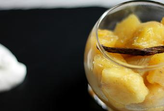 Retirer la gousse de vanille puis disposer la compotée dans les verrines.