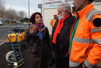 Véronique Calueba-Rizzolo et François Liberti sont venus sur le chantier de réfection des trottoirs du centre commercial de l’île de Thau,ce mardi 15 décembre 2015, en matinée. Le Département finance les travaux de réhabilitation de cet espace à hauteur de 8 000 €. Depuis de nombreuses années, le Département finance les travaux de sécurité des rues et parkings, des aires de jeux, des espaces verts et des écoles. C’est un peu plus de 100000 € investis, ces dernières années pour le bien être des habitants et leur sécurité ainsi que pour l’entretien et l’embellissement du quartier.