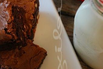 5)Ajoutez les œufs, un à la fois, dans la casserole avec le mélange de chocolat en battant au fouet après chaque ajout. Incorporez le mélange de farine à l’aide du fouet. À l’aide d’une spatule, incorporez le reste de pépites de chocolat et les noix. Versez la préparation dans le moule et enfournez environ 35 minutes ou jusqu’à ce qu’un cure-dent inséré au centre du gâteau en ressorte avec des grumeaux et non complètement propre. Laissez refroidir complètement le gâteau dans le moule. Démoulez et coupez en carrés.