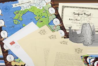 Contenu du premier courrier : une couronne, un badge, 5 autocollants, un diplôme, 4 lettres, une carte