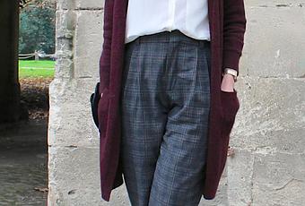 Pantalon taille haute - Zara (collection actuelle)Chemise en soie - MangoGilet - Bizzbee (collection actuelle)Derbies - Dr MartensChapeau - H&M