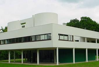 La villa Savoye a été construite de 1928 à 1931 par l'architecte Le Corbusier. Baptisée Les Heures claires par ses propriétaires et de « machine à habiter » par son architecte, elle achève la période dite "des villas blanches" de l'architecte. Elle est constituée d'un parallélépipède blanc soutenu par de fins pilotis, couvert de fenêtres en bandeau et surmonté de toits-terrasses.