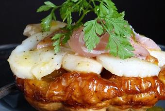 Un caramel juteux, un délicat parfum de fumé en bouche, une pâte friable et légère, … pour une entrée réussie, délicate et goûteuse. En un mot, un repas de fête, accessible par tous.