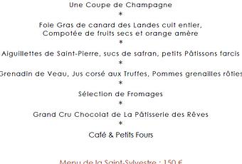C’est le cas de l’hôtel San Régis, à deux pas des Champs Élysées, et qui pourtant bénéficie d’un calme serein dans une rue tranquille donnant sur l’avenue Franklin Roosevelt. La salle du restaurant est cosy à souhait, bien décorée, et agréable sous sa grande verrière. Le chef connait son métier et travaille une cuisine de facture française agréable et savoureuse. Il s’est surpassé pour son Menu Réveillon de la Saint-Sylvestre avec une belle harmonie des plats et les fameux gâteaux de La Pâtisserie des Rêves de Philippe Conticini.