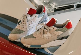 Pour clôturer l’année l’équipe du shop Concepts nous dévoile une nouvelle collaboration avec New Balance sur la silhouette de la 998, avec comme thématique la course d’automobiles prestigieuses. Toujours aussi qualitatifs, les matériaux utilisés sont le cuir suédé de porc avec des parties perforées pour l’ensemble de l’upper, un heel support imitation carbone et le logo latéral “N” en cuir souligné de 3M. Pour les coloris l’on retrouve des tons, gris moyens, blanc cassé et vert d’eau pimentés par des accents rouges placés sur la tongue et le heel tab et un peu de bleu sur la midsole. La boite utilise le motif damier du drapeau d’arrivée pour rappeler l’univers de la course tout comme l’insole qui arbore une impression bitume sur laquelle se place le logo du shop façon peinture blanche de marquage.