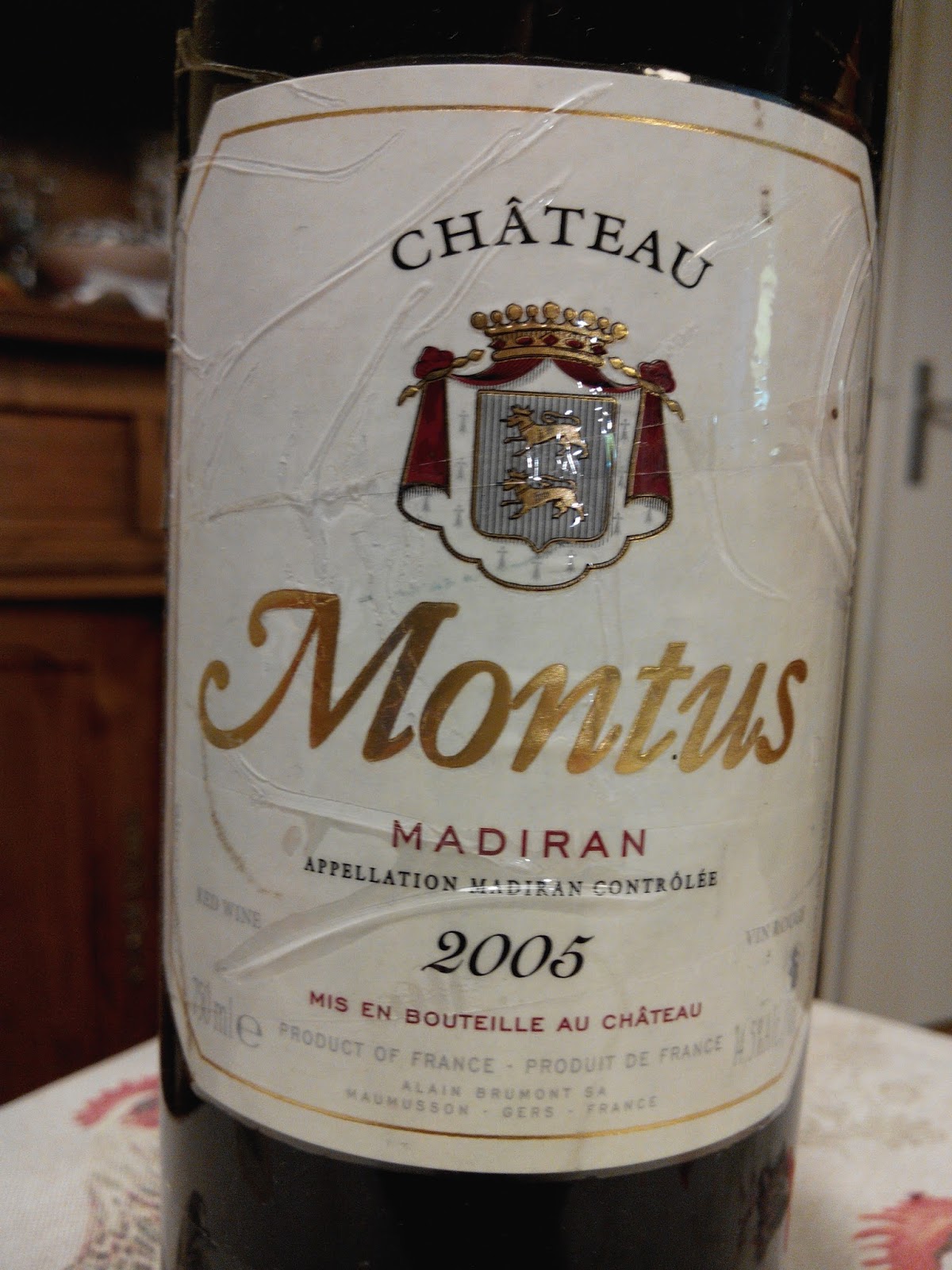 Avec le magret, restons dans la région du SO avec ce Madiran, Montus 2005 : une sorte de choc pour mon palais plutôt bourguignon, mais un choc réussi. Tout y est : robe d'encre profonde et presque insondable, un nez à la fois fruité (fruits noirs : cerises et pruneaux) et tannique, une bouche énorme mais d'une élégance folle, des tannins abondants, gras et déjà bien fondus, une acidité bien présente et une sensation de fraîcheur intense en finale. De la mâche certes, un substrat terrien mais c'est rudement bien fait. Malgré ses 14,5°, aucune trace de chaleur ou de fatigue. La preuve, la bouteille n'a pas survécu au repas ! Excellent
