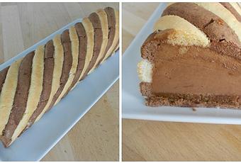 - Lorsque le mélange est à 40°, ajouter la crème montée puis couler dans le moule à bûche sur la génoise. Tapoter légèrement le moule pour tasser la mousse.