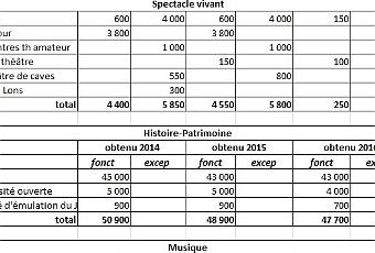 Après le vote du budget lundi dernier, voici le tableau des subventions attribuées aux associations culturelles pour l'année 2016 (avec rappel des années 2014 et 2015).