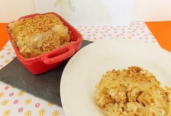 J'ai voulu innover un peu. J'ai décidé d'en faire un Gratin, une sorte de mille-feuilles, dans lequel j'ai alterné les couches de riz, de choucroute de Siam et de Tofu cuisiné.