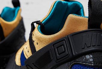 Nike continue de décliner son Safari print cette saison avec une nouvelle version de la Nike Air Huarache Utility inspirée par les colorway ACG originaux. La silhouette créée par Tinker Hatfield et mise à jour en 2015 par Nike Sportswear utilise une midsole noir aux motifs speckles, associé à un garde-boue noir Safari et un upper néoprène bronze et bleu. La Nike Air Huarache Utility ACG “Tan Blue” est actuellement disponible chez Footpatrol et chez Size? Au prix de 140€.