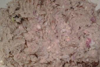 4- Coupez la saucisse fumée et la mette avec le poulet et mixer, mais pas trop finement (thermomix 10sec/vit8)