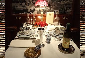 La table dressée dans le grand wagon du Simplon Orient Express Paris Beograd Istambul, via Milano et Trieste (c'est ce qui figure sur la plaque) témoigne du faste et du luxe de ces Grands Express. On comprend qu'ils aient inspiré les écrivains comme Graham Geene, Paul Morand, Agatha Christie, et les cinéastes... Outre le James Bond précédemment cité on se souvient de Une femme disparait d'Alfred Hitchcock, L'espion qui m'aimait de Lewis Gilbert ou encore Sherlock Holmes attaque l'Orient-Express de Herbert Ross.