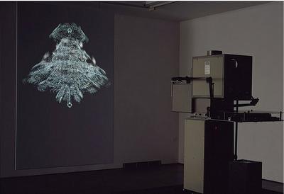 Cependant, elle est présentée sur un mode particulier, puisqu'un projecteur, conçu exprès, fait partie de l'installation.