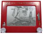 Ce dessin sur ardoise magique est signé de Matthew Barney, artiste américain de 40 ans, sculpteur, vidéaste, réputé pour ses performances fantastiques et ses films déjantés. Info people : il est aussi le mari de la chanteuse Bjork !
