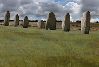 A un certain moment, les pierres ont été délibérement renversées et recouvertes d'un immense talus de terre et de craie. A l'est, près de 30 pierres ont survécu sous le talus, alors qu'ailleurs ce ne sont que des fragments ou des trous de fondation. Image: rendu du superhenge après que les pierres aient été renversées et enterrées. Image: LBI ArchPro, Juan Torrejon Valdelomar, Joachim Brandtner