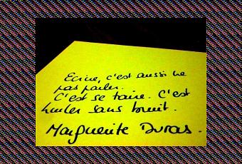T’étais abasourdie par Lacan, mais sais-tu ce qu’il a réellement dit ? Je vais te le dire. "Tant pis pour le whisky à haute dose, si elle n’écrit pas, ce serait la catastrophe, la seule et vraie catastrophe…"