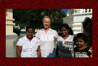 Quand je suis avec mes amis locaux* dans des endroits touristiques, ils pensent éventuellement que je vais parler avec mes pairs blancs. J'ai tenté de créer des contacts avec ceux-ci parfois, juste avec le sourire, comme je fais avec les locaux qui me renvoient alors de magnifiques sourires et, même parfois, byebye de la main. Certains viennent même pour se faire prendre en photo avec moi, me remerciant chaleureusement alors. (photo : A Dambulla, une petite famille qui voulait une photo avec moi. J'en ai été honorée et elles aussi. Chacun sa façon d'interpréter les situations... ;-))