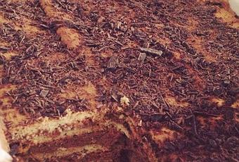 Tapisser un moule rectangulaire de papier sulfurisé. Le remplir en alternant par couches les biscuits trempés dans le thé refroidi puis la crème au chocolat.