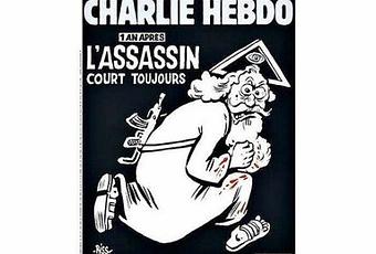 Un an aprčs, Charlie Hebdo commémore cet événement avec une Une dans la droite ligne de leur politique éditoriale, et qui a eu le don d'hérisser le poli de certains.